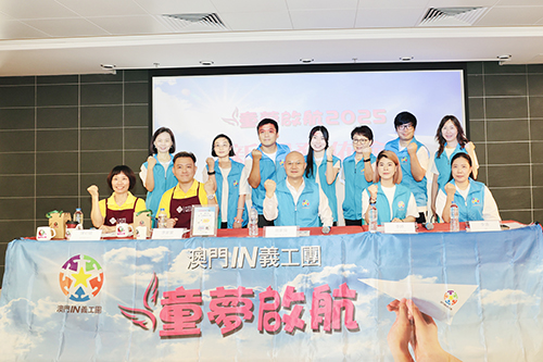 活動新聞發佈會於昨日下午2時半在下環活動中心舉行,澳門IN義工團主席施家倫,阿維斯餐飲集團有限公司廚師長代表李家豪、營運代表陳彩媚,及“童夢啟航2025”活動統籌李婷等出席並介紹活動詳情。