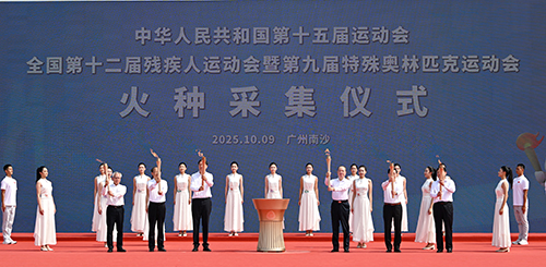 【本報訊】第十五屆全國運動會和全國第十二屆殘疾人運動會暨第九屆特殊奧林匹克運動會火種採集儀式昨日在廣州南沙舉行。行政長官岑浩輝代表澳門特區點燃十五運會和殘特奧會聖火,澳門賽區組委會主席、社會文化司司長柯嵐受領火種。火種採集儀式圓滿落幕,標誌著十五運會和殘特奧會將進入開幕30天倒計時。火種將分別奔赴廣州、深圳、香港、澳門四個城市,在11月舉行火炬傳遞活動。