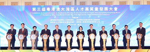 【本報訊】由澳門特區政府人才發展委員會、香港特區政府勞工及福利局、廣東省人力資源和社會保障廳、廣東省人民政府港澳事務辦公室聯合舉辦的第三屆“粵港澳大灣區人才高質量發展大會”由昨日起一連四日假澳門威尼斯人金光會展舉行。本屆大會以“登高望遠、海納百川、銳意進取,打造國際高端人才集聚高地”為主題,三地政府期望透過活動,向外界展示大灣區人才政策和成效,以及大灣區發展優勢和機遇,招攬世界各地人才集聚灣區發展,促進大灣區人才高地建設。