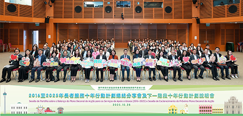 據介紹,截至今年9月,“2016至2025年長者服務十年行動計劃”的整體完成率達99.3%,養老保障機制跨部門策導小組有信心於今年內完成所有工作。策導小組代表於會上總結及分享工作成果。回顧過去10年,在特區政府多個公共部門的積極協作、民間機構及社會各界的支持及共同參與下,首個長者服務十年行動計劃的各項措施取得良好的成效。醫社服務方面,離島醫療綜合體北京協和醫院澳門醫學中心投入服務、設立失智症診療中心及支援中心、推出照顧者津貼、體育健康諮詢站拓展至長者服務設施等。權益保障方面,設立澳門特區長者日、完成《長者權益保障法律制度》的立法工作、落實雙層式社會保障制度、提高長者申請社會房屋的資產淨值上限、開展長者職業培訓計劃等。社會參與方面,增設長者書院分校、推進持續進修發展計劃、編製長者口述歷史書籍等。生活環境方面,落實執行《澳門特區無障礙通用設計建築指引》、豁免長者乘搭公共巴士的車資、優化行人過路設施的無障礙設置等。