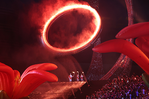 以《圓夢未來》為主題的文體展演拉開序幕。整個演出由“同根同源”、“同心同緣”、“同夢同圓”3個篇章組成,創新運用體育元素、藝術手段和前沿科技,生動詮釋了本屆全運會“激情全運會,活力大灣區”的主題。