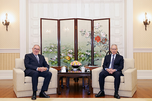 【本報訊】行政長官岑浩輝昨日在政府總部與葡萄牙議會外事委員會主席若澤•塞薩里奧(José Cesário)一行會面,雙方就加強澳門與葡萄牙交流合作等議題交換意見。
