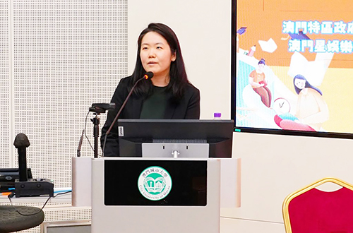 陳倩雯致辭指出,澳門正以“1+4”適度多元發展策略為引領,經濟穩步復甦。2024年本地生產總值達4,033億元,按年增長8.8%,非博彩行業增加值佔比56.7%,其中會展、金融及高新技術等新興產業表現亮眼。本次活動邀請來自會展、金融、經濟、科技四大領域的行業專業人士舉辦面對面職業分享會,希望幫助青年學生認識行業趨勢、做好職業規劃,並鼓勵學生積極提問交流,累積經驗、開拓前程。