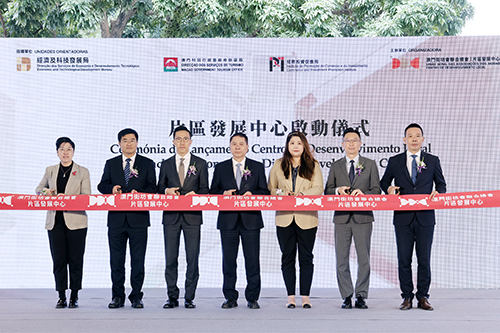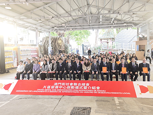 片區發展中心啟動儀式昨日上午11時在媽閣塘片區大鐵棚舉行,由中央政府駐澳門聯絡辦公室副秘書長黃華蓋、澳經濟及科技發展局局長邱潤華、旅遊局代局長司徒琳麗、中央政府駐澳門聯絡辦公室經濟金融部副部長楊全州、招商投資促進局主席謝永強、澳門街坊會聯合總會會長吳小麗及理事長陳家良等主禮。