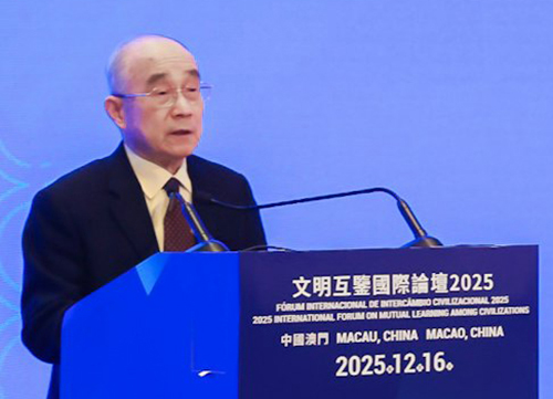 全國政協文化文史和學習委員會副主任、澳門基金會行政委員會主席吳志良在主旨演講中提出澳門應從歷史的“文明實驗室”升級為“文明轉換器”,他倡議,打造“思想澳門”、“平台澳門”、“教育澳門”三大支柱,強調澳門不是東西方相遇的“終點”,而是全球文明對話的“起點”與“樞紐”,讓來自不同大陸的智慧,在這裡被真誠理解、創造性轉化,再帶著澳門所賦予的“共生密碼”,流向世界,滋養更多元的文明土壤。