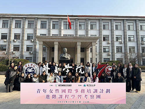【本報訊】澳門婦聯青年協會主辦、澳門基金會贊助的“青年女性國際事務培訓計劃進階課程學習考察團”日前赴京考察。34名完成基礎培訓的澳門青年女性學員,經四天專題授課、外交觀摩及實地參訪,系統提升國際事務與跨文化傳播能力,深化愛國愛澳情懷,為融入國家發展大局、講好中國與澳門故事積備力量。