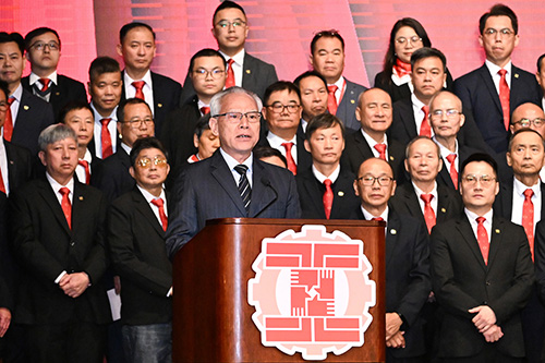 林倫偉致辭表示,工聯總會將堅守初心使命,高舉愛國愛澳旗幟,認真學習好領會好貫徹好習近平主席的系列重要講話精神、黨的二十屆四中全會精神,在支持特區政府推動經濟適度多元發展、增進民生福祉、推動愛國愛澳力量提質增量等方面,展現更大擔當、作為和貢獻。他強調,工聯將堅定做好五方面工作:一是更加堅定愛國愛澳核心價值,築牢“一國兩制”社會政治基礎;二是更加堅定推動經濟多元,助力澳門高質量發展;三是更加堅定服務社會,增進廣大職工和居民的獲得感幸福感;四是更加堅定推進工會改革,發展壯大愛國工運事業;五是更加堅定服務國家發展大局,助力特區融入灣區、深合區。