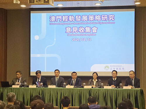 “澳門輕軌發展策略研究”意見收集期由2026年1月23日至2月28日止,公共建設局早前已分別於1月26日及27日舉辦了兩場專場會議,出席人員包括交通諮詢委員會委員、城市規劃委員會委員、環境諮詢委員會委員、社區服務諮詢委員會委員和建築業發展關注小組成員。