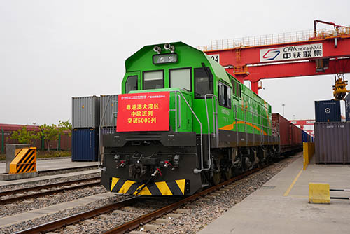 【本報綜合報道】據中新社報道,2月11日上午,廣州國際港鐵路場站汽笛長鳴,X8426次中歐班列滿載高端電子設備、新能源汽車零部件等貨物緩緩駛出,奔赴波蘭。這標誌著粵港澳大灣區中歐班列自2013年首趟開行以來,累計開行量正式突破5,000列。