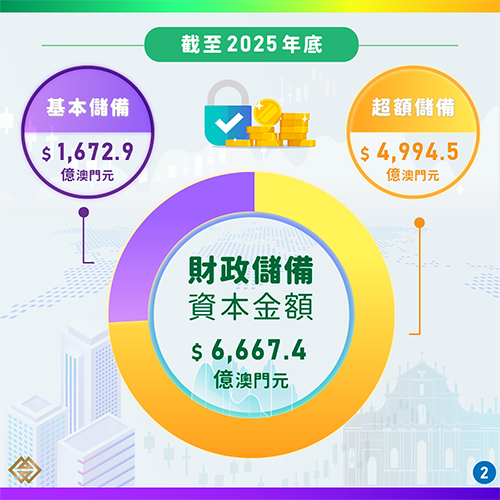 金融管理局公佈的財政儲備資料顯示,截至去年底,特區財政儲備的資本金額為6,667.4億元;其中,基本儲備及超額儲備分別為1,672.9億元及4,994.5億元。去年特區財政儲備錄得429.2億元的投資收益,較2024年的投資收益309.5億元增加38.6%。