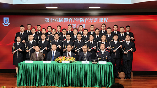 在保安範疇官員培育方面,黃子暉指,第十八屆警官/消防官培訓課程有30名學員修讀,課程為期四年,隨後實習半年。其中,20名學員獲授予“警務科學學士學位”,就職成為治安警察局副警司;10名學員獲授予“防護及安全工程學學士學位”,就職成為消防局副一等消防區長,從此擔起保護市民生命和財產安全的職責。