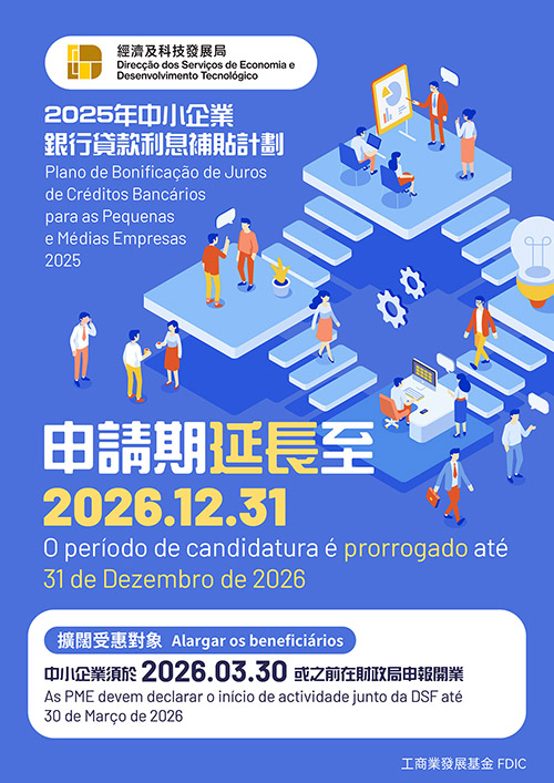 特區政府於去年4月22日推出中小企業銀行貸款利息補貼計劃,以貸款利息補貼的方式向中小企業提供資助,減輕融資成本,支持企業補充資金流,增強抗風險能力。為擴大受惠企業範圍,當局已將“2025利息補貼計劃”申請對象的資格條件調整為“於2026年3月30日或之前已向財政局申報開業的商業企業”。符合資格的中小企業,凡獲得由澳門持牌銀行批准用於企業營運的資金貸款,可透過銀行申請貸款利息補貼,每一商業企業主的貸款額上限為500萬澳門元,補貼期最長3年,年補貼率上限4厘,銀行貸款額總額上限100億澳門元。