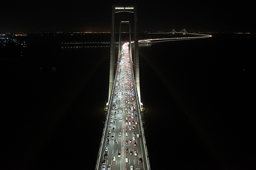 南沙大橋、虎門大橋等通道的車流量當天也維持高位運行。港珠澳大橋車流量約2.43萬車次,同比增長4.45%;黃茅海跨海通道車流量約2.14萬車次。交通助力粵港澳大灣區城市群融合發展作用持續增強。