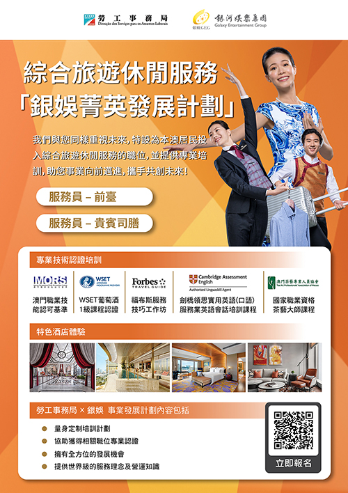 銀娛推酒店營運培訓專項計劃提供25職缺