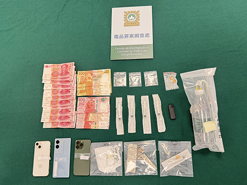 案情指,本月19日,路氹城某酒店清潔員清理房間時,發現懷疑吸毒工具,隨即報警處理。司警接報後,派員到場調查,在酒店房間內的餐上起出1.42克海洛因、0.41克冰毒以及吸毒工具,相關毒品市值3,200澳門元。