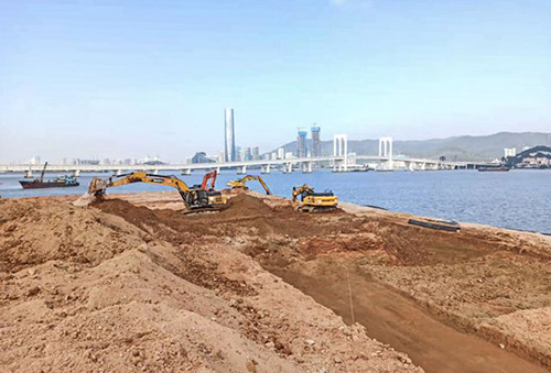 建設辦表示,是次項目於2018年11月進行工程委託,隨即啟動堤堰疏浚及陸域回填等工作。目前,陸域填砂已基本完成,並具備條件全力推進下階段的堆載預壓及堤堰建造等相關工作。對於工程未能如期於10月完工,當局已嚴肅跟進,雖然承建商申請延期時提出理據主要是受前段時間的供砂短缺問題、新型冠狀病毒肺炎的影響下供砂數量較預期少,颱風下配合相關部門指示撤離施工船舶,以及第一階段的堆載預壓時間較預期長所致。然而,有部分延期申請存在不合理且缺乏依據的情況,例如,按工程招標要求及合同規定,供應填海工程所採用的砂由承建商負責,並需按批准的工作計劃分階段供應,惟承建商在工程前段時間一直以周邊地區供應短缺為由沒有按時按量供應,影響後續的排水板打設及堤岸建造等工序延誤。