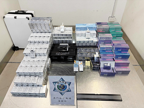 據澳門海關公佈,2月4日,海關人員在澳門國際機場入境旅客檢查區發現3名女性內地居民神情緊張,經檢查,發現該3人將合共74,670支香煙、16,052支電子煙及1,275克香煙煙絲等貨物藏於隨身物品內,試圖將之偷運入境。