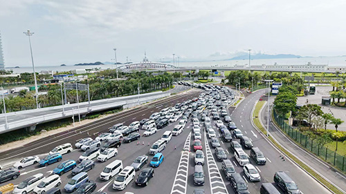 經港珠澳大橋“北上”的客流同樣大幅增長。港珠澳大橋的開通,讓香港到珠海、澳門的車程從3個小時縮短至約45分鐘。2023年“澳車北上”、“港車北上”政策正式落地實施後,“北上”尤其自駕“北上”港澳居民數量出現大幅增長。港珠澳大橋邊檢站資料顯示,2023年,港珠澳大橋珠海公路口岸日均車流量約9,000輛次,而今年以來日均已超1.8萬輛次,逢週末及節假日期間,日均車流超過2萬輛次,單日最高達到2.8萬輛次。