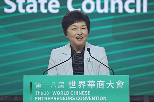 陳旭致辭表示,世界華商大會自創辦以來,在各方共同努力下,已成為全球華商加強聯繫、促進合作的重要平台,在推動中外經貿往來、助力華商事業發展、提升華僑華人凝聚力和國際影響力等方面,發揮著重要作用。她特別提到,前不久召開的中共二十屆四中全會,審議通過了關於制定國民經濟和社會發展第十五個五年規劃的建議,不僅為未來五年中國發展擘畫藍圖,也將為全球投資者開創更為廣闊的發展空間。衷心希望廣大華商發揮優勢,積極參與中國式現代化建設,把握中國高質量發展機遇,用好中國更大力度吸引和利用外資、鼓勵外商投資企業境內再投資等政策舉措,持續加力投資中國,參與高質量共建 “一帶一路”,促進中外經貿合作與人文交流,在助推中國和平發展的同時,共享發展成果,實現自身事業更大發展。
