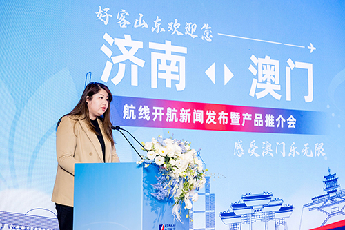 澳門航空“濟南-澳門”航線開航新聞發佈及產品推介會昨日假濟南洲際酒店舉行。澳門旅遊局副局長司徒琳麗致辭時表示,魯澳在旅遊領域有著密切交流和合作,兩地在推動旅遊業高質量發展、促進文化和旅遊深度融合發展上有紮實基礎。相信“濟南-澳門”航線將進一步促進山東與澳門兩地的經濟、旅遊及文化交流,為旅客提供更便利的旅遊選擇,促進客源互送。