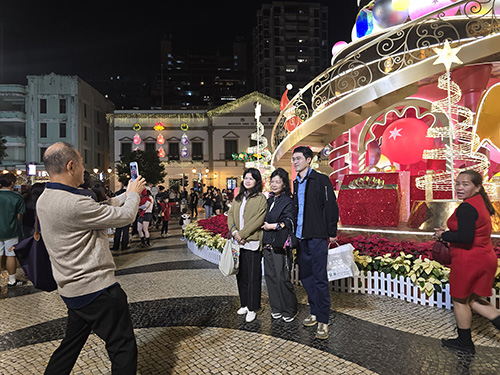 因應聖誕節來臨,市政署早前已在全澳各區不同地點及街道裝設聖誕燈飾,部分廣場特設大型聖誕樹,巿面充滿節日氣氛。連日來,已有不少居民和遊客到塔石廣場的聖誕市集、議事亭前地及氹仔舊城區一帶感受聖誕氣氛,與各種聖誕裝置合照。