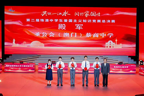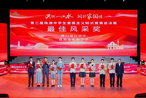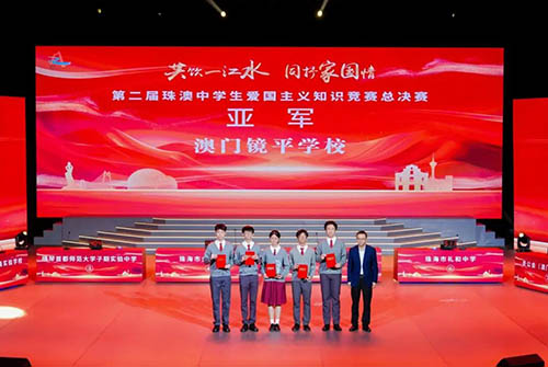由珠海市關心下一代工作委員會、珠海市教育局與澳門教育及青年發展局合辦的“第二屆珠澳中學生愛國主義知識競賽”於上月17日舉行總決賽。競賽以“共飲一江水,共抒家國情”為主題,旨在促進珠澳兩地學子相互交流,加深學生對愛國主義精神的理解和認識,傳承和弘揚愛國精神,厚植家國情懷。競賽總決賽經過多輪激烈角逐,最終由珠海市禮和中學摘得桂冠,澳門鏡平學校、濠江中學、聖公會(澳門)蔡高中學分別獲得亞軍、季軍和殿軍。