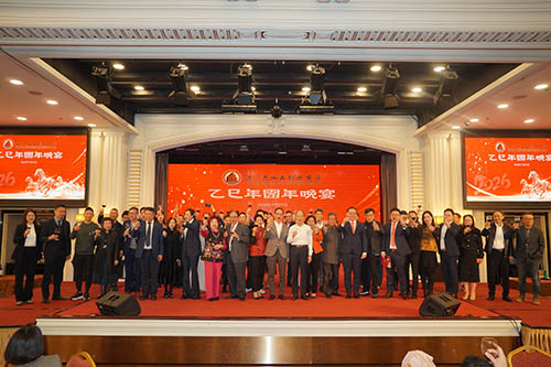 【本報訊】澳門房地產聯合商會於日前假座萬豪軒酒家舉行乙巳年團年聯歡晚宴,商會理監事、全體會員、業界同仁及親友嘉賓歡聚一堂。出席晚宴的主要會務負責人包括:會長吳在權,創會會長徐國誠,常務副會長李廣志,理事長陳迎金,副會長李廣鴻、柯慶耀、鄭建東、畢志健、黃焯楹、吳文慧、陳麗媚等,監事長趙康池及常務副理事長李駿浩亦全程參與,與全體來賓共度佳節。