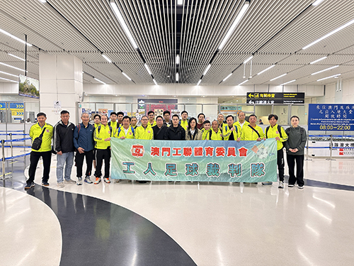 【本報訊】“2026年度港澳工人足球裁判埠際賽”2月28日在香港舉行,澳門工聯體育委員會工人足球裁判隊一行數十人在領隊林錦雄率領下於當日上午十一時在港珠澳大橋澳門口岸乘坐穿梭巴士赴港作賽,在賈炳達道公園足球場進行“ 港澳工人足球裁判埠際賽”。
