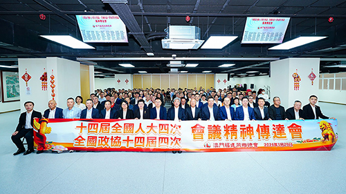 陳明金在傳達兩會精神時,重點闡述了今年全國兩會報告及“十五五”規劃為澳門與福建帶來的新發展機遇。他強調,澳門要發展經濟適度多元,福建也承擔著“高質量建設兩岸融合發展示範區”及深入推進“21世紀海上絲綢之路核心區”建設的重要使命,閩澳兩地優勢互補性強,應在新階段“並船出海”,將國家戰略紅利轉化為協同發展的強大動力。他提到,澳門需擔當好國家與葡語、西語國家合作的“精準聯繫人”,為有意“出海”的福建企業提供一站式服務。澳門中小企業可借鑑“晉江經驗”,走“專精特新”發展道路,在餐飲、零售、會展、文化創意、傳統手工藝等自身擅長領域精耕細作,透過科技創新與數字化轉型升級。同時亦應該引導福建企業把握琴澳一體化機遇,吸引福建在中醫藥、科技研發、現代金融等領域的龍頭企業入駐;共同探索在“一帶一路”沿線國家做好文化推廣,講好中國故事、閩澳故事,積極推動閩、台、澳三地交流合作,為服務國家大局與促進祖國統一貢獻力量。